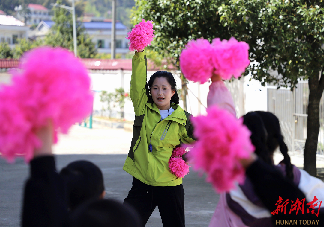 杜丽萍则用花球唤醒孩子们的运动激情,动感的音乐、有趣的动作、鲜艳的花球、趣味的游戏,一堂《啦啦操》课让孩子们尽情释放活力,在律动中感受运动的快乐。