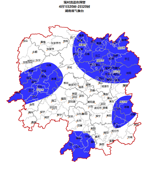 湖南省气象台4月1日16时发布暴雨蓝色预警:
