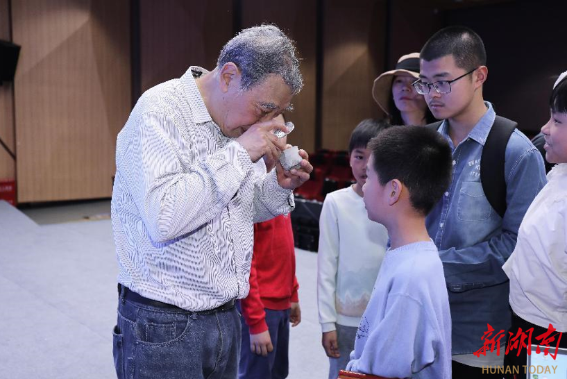 讲座上,彭善池研究员从中国和湖南的“金钉子”分布情况入手,深入浅出地介绍了“金钉子”的概念及其重要的科学意义,随后把他在湖南研究和建立两枚“金钉子”的故事娓娓道来。互动提问环节,观众们积极提问,“为什么选择球接子三叶虫作为确立金钉子的标准化石?”“在发现金钉子的过程当中有哪些故事?”“湖南地区还发现过哪些古生物化石?”报告结束后,仍有许多观众留下来与彭善池研究员交流互动,现场气氛十分热烈。