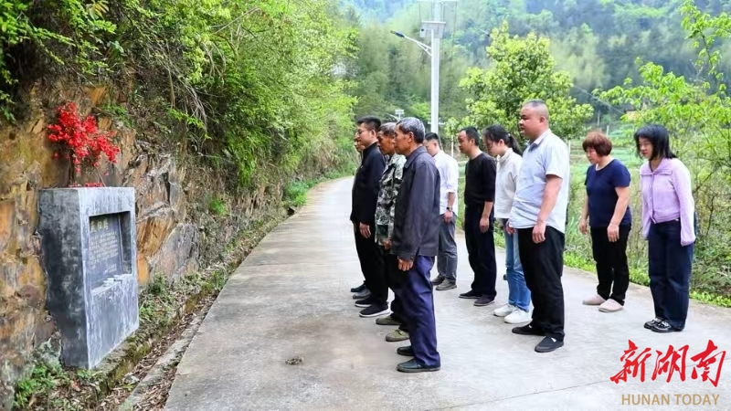 当天,大源村的村民代表也来到纪念碑旁,献上一束束鲜艳的映山红,敬上一碗自酿的黄桃酒。就在这块石碑前,大家向黄诗燕讲述村里的喜人变化、自己的美好生活。
