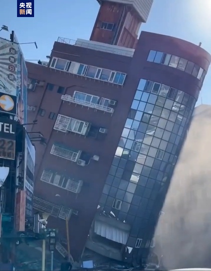 据台媒3日报道,受地震影响,花莲一大楼出现倾斜。据悉地下室有3人被困。