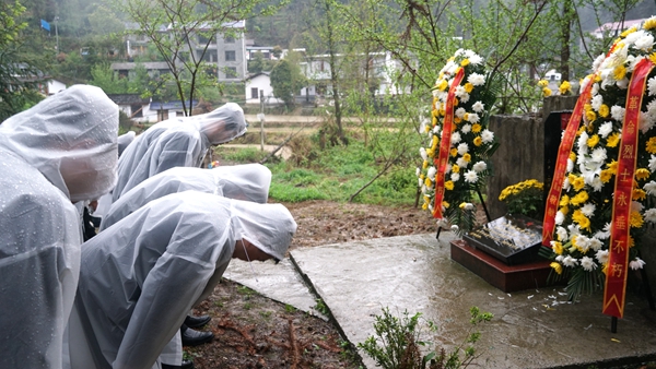 随后,大家来到协合乡李家岗村散葬烈士墓前,现场庄重肃穆,敬献花篮仪式后,全体人员向烈士墓行三鞠躬礼,深切缅怀革命先烈,寄托无限的哀思与深切的敬仰。