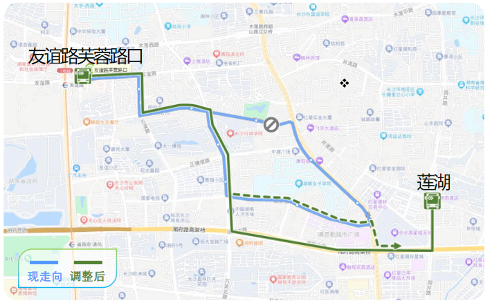其中,社区巴士13号线(原友谊路芙蓉路口至友谊路芙蓉路口单向循环运营),调整之后首末站情况为:莲湖至友谊路芙蓉路口往返运营。上行情况是从莲湖发车,经洞井路-湘府路-万芙路-新韶路-五凌路-友谊路至友谊路地铁站;下行情况是从友谊路地铁站发车,经友谊路-五凌路-新韶路-万芙路-迎新路-韶山路-湘府路-洞井路至莲湖(不再行经新韶路、韶山路)。运营时间是7:00—20:30;票价是1元/人次。调整理由是与轨道1号线友谊路地铁站接驳,满足红星商圈周边市民出行需求,前往新韶路和韶山路的市民可乘坐226路。