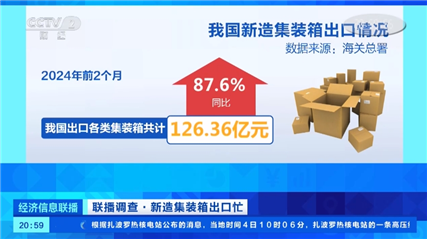 宁波海关所属大榭海关物流监管一科关员 王守军:今年前2个月宁波口岸新造集装箱出口约8.3亿元,同比增长近4倍。
