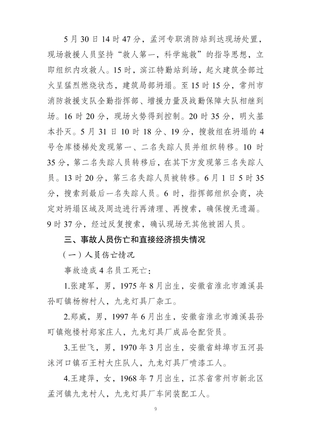 最终4号仓库整体过火并坍塌,导致从企业不同区域前往4号仓库参与火灾扑救的4名员工在火灾中死亡。