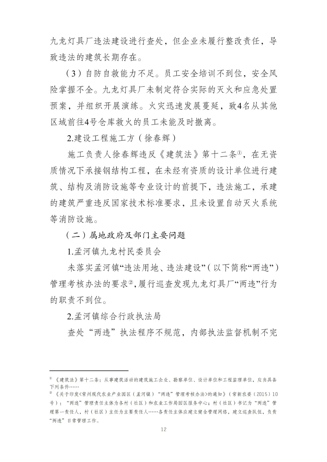 2.九龙灯具厂原负责人朱银海、施工负责人徐春辉违法实施4号仓库的建设,其柱、梁及楼板等建筑构件不满足《建筑设计防火规范》(GB50016)和《建筑钢结构防火技术规范》(GB51249)对构件耐火极限和承载力的要求,建筑本身存在严重的安全隐患。