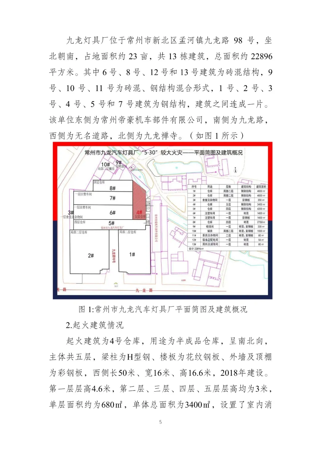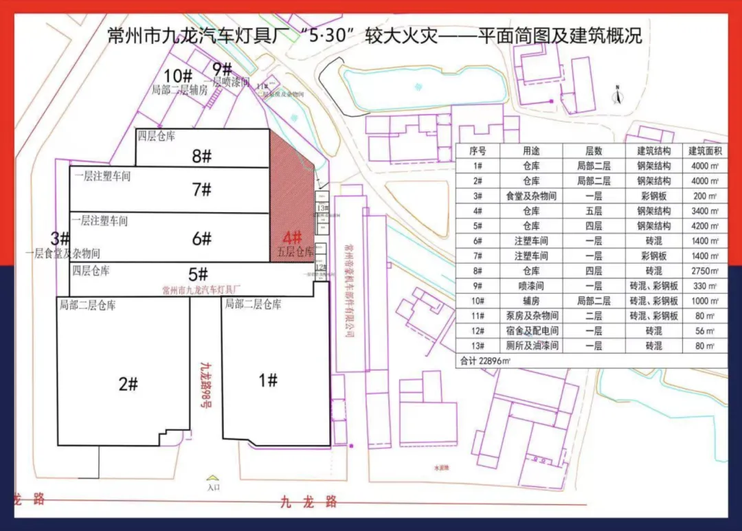 火灾事故发生前,九龙灯具厂有13栋建筑,其中4栋为砖混结构,3栋为砖混、钢结构混合形式,6栋为钢结构,建筑之间连成一片,形成“口袋工厂”,且绝大部分为违法建筑,无相关审批手续。有关部门曾对九龙灯具厂违法建设进行查处,但企业未整改。