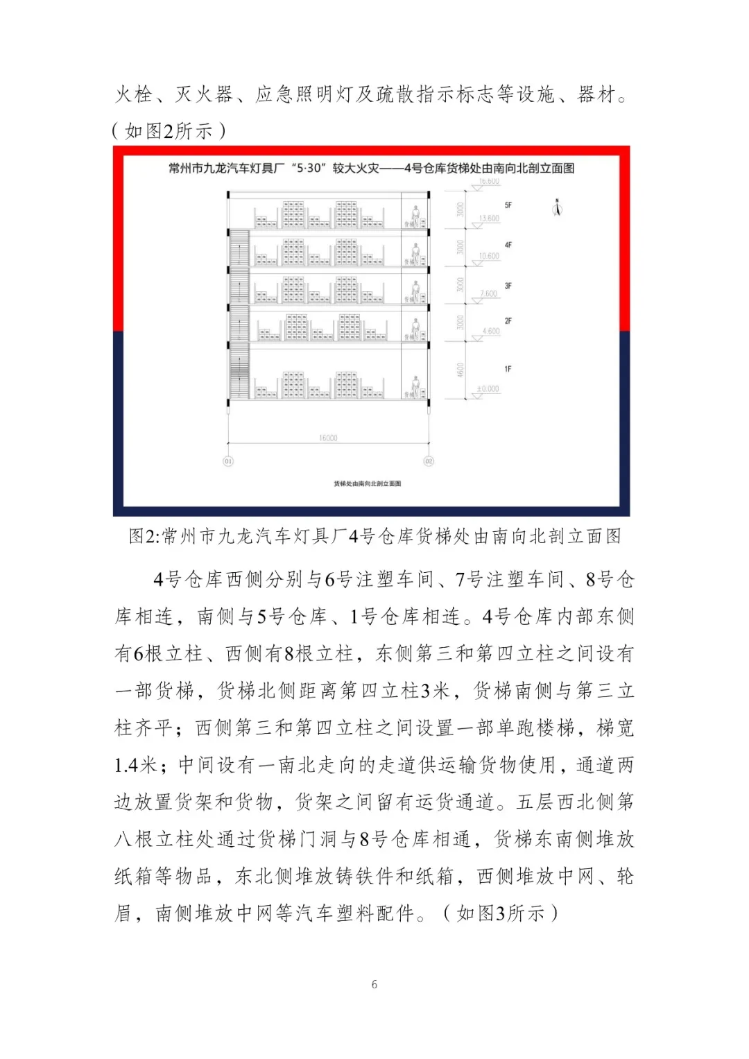 3.九龙灯具厂4号仓库钢制楼板的拼装焊接方式致其存在上下层贯通的缝隙,不能有效阻隔塑料制品燃烧形成的流淌火,且存在垂直的电梯井,导致火灾迅速向下蔓延;未按国家消防技术标准设置自动灭火系统,无法控制初期火灾发展,快速形成立体燃烧。