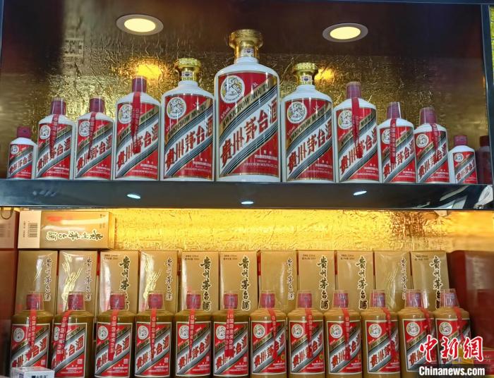 酒行中展示的贵州茅台酒。 左雨晴 摄