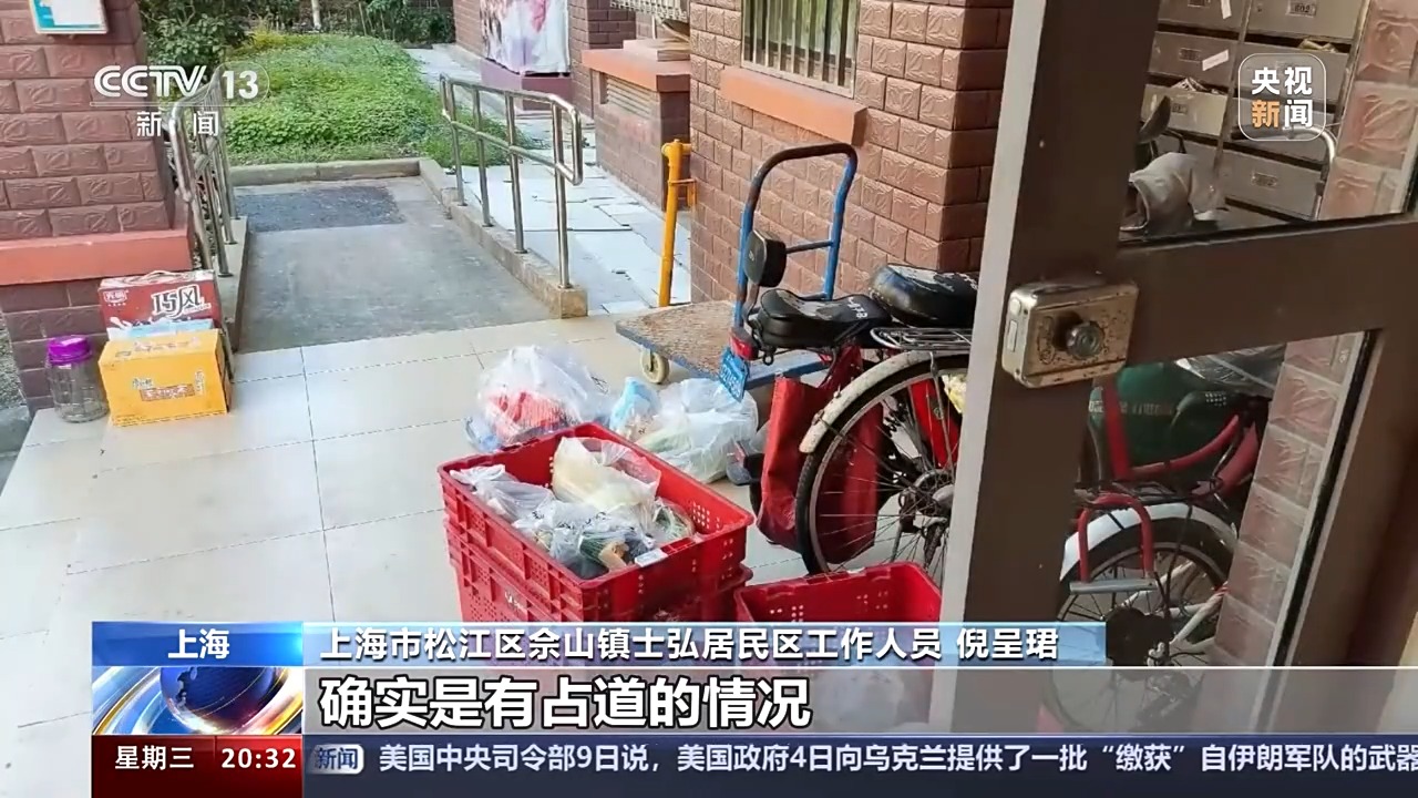 松江区佘山镇士弘居民区党总支书记 倪呈珺:矛盾的点在于小区是动迁小区,老年居民比较多。肯定是希望有一个比较便捷的地方,像这种自提的模式对他们来说是满足他们需求的;但是矛盾的点就是合法性、规范性还有管理上面。