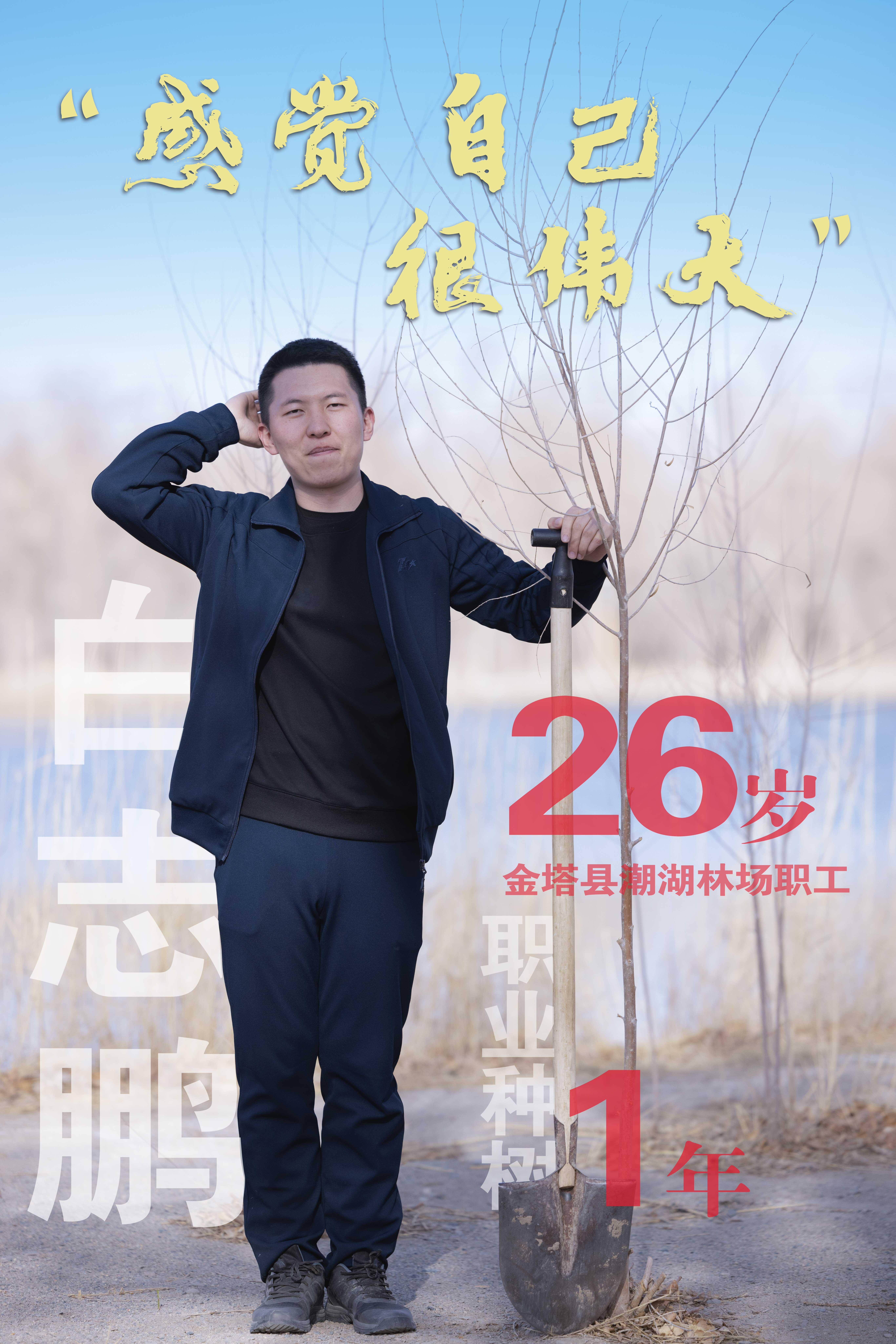 只种了一年树的白志鹏,有点不太愿意配合拍照,他觉得合影中只有拇指粗细的树,让他这个退伍军人觉得有些伤面子。同事们都记得他刚来报到时,一被叫到名字就立正答“到”的样子,说他笔直得像一棵树。白志鹏还来不及对新职业有更深刻的理解,只觉得种树和当兵一样,“感觉自己很伟大”。