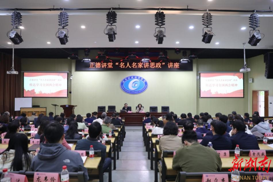 4月12日,湖南财政经济学院举办正德讲堂“名人名家讲思政”专题讲座,第十四届全国政协委员、九三学社湖南省委会主委、长沙学院校长陈赤平受邀作传达学习全国两会精神专题报告。报告会由校党委书记杨兰英主持。