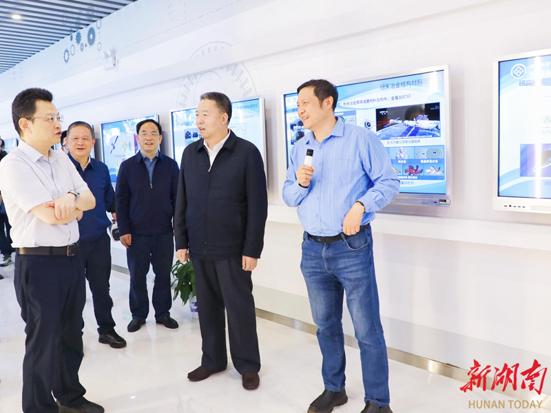 (4月17日下午,毛万春在中南大学粉末冶金研究院调研。)