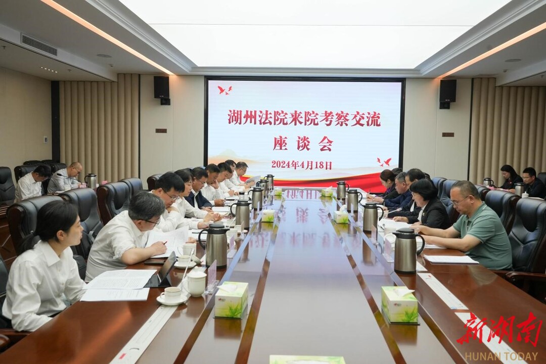 湖南法治报·新湖南客户端讯(通讯员 丁依)4 月17至18日,浙江省湖州市中级人民法院党组书记、院长肖国耀率市中院部分班子成员和市辖区各基层法院院长一行到湘潭中院进行考察交流。湘潭市中院党组书记、院长谷国文陪同并主持交流座谈。