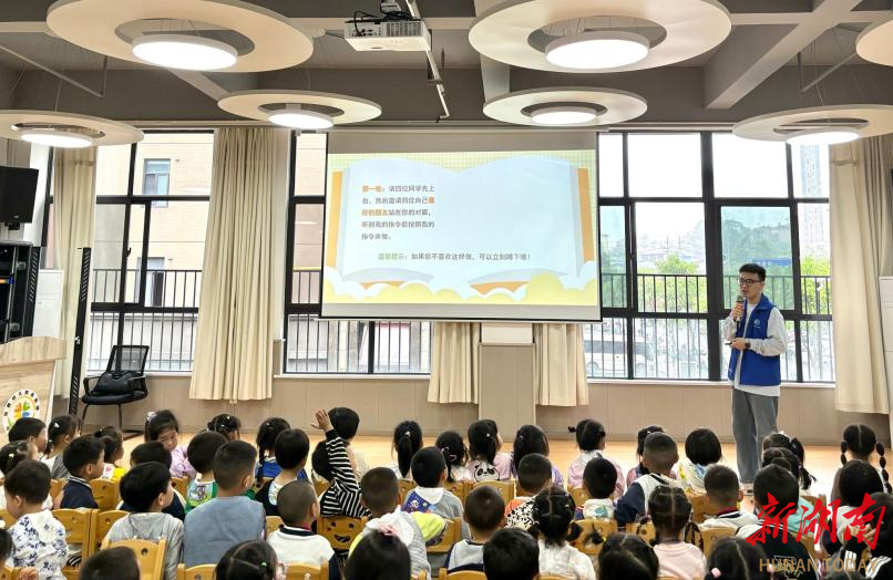 4月17日上午,湖南财政经济学院外国语学院携手长沙市岳麓区咸嘉湖街道西大门社区走进岳麓幼儿教育集团中央美郡幼儿园,开展志愿防性侵防暴宣讲活动,助力幼儿身心健康和安全成长。