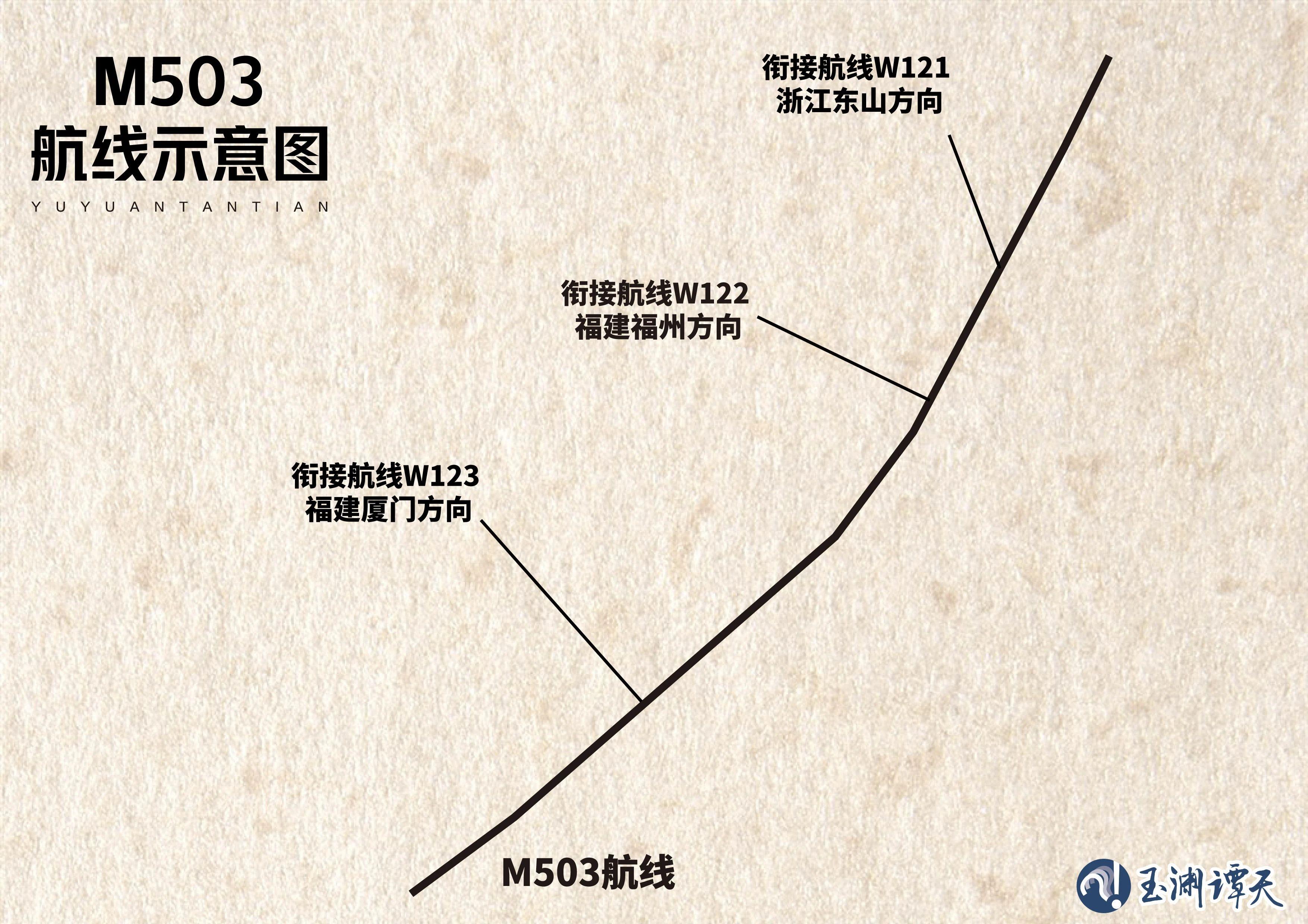 当时,民航局还宣布,M503航线将开启自南向北方向运行的航线以及W121衔接航线,W122航线和W123航线也将开启由东向西方向上的正常运行。