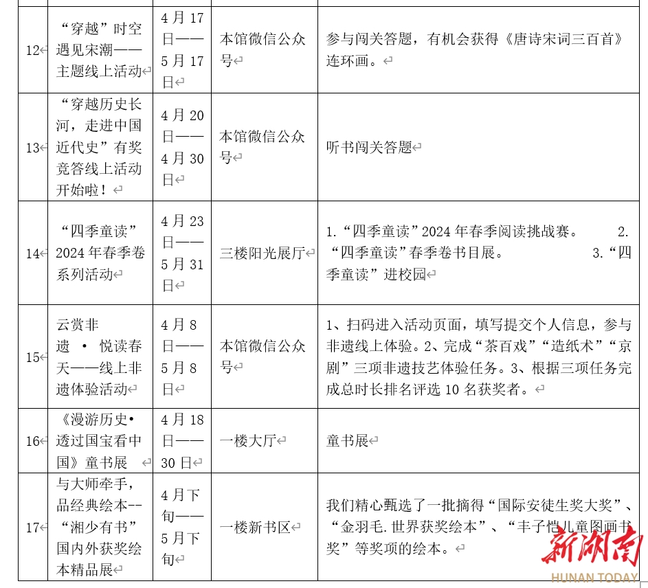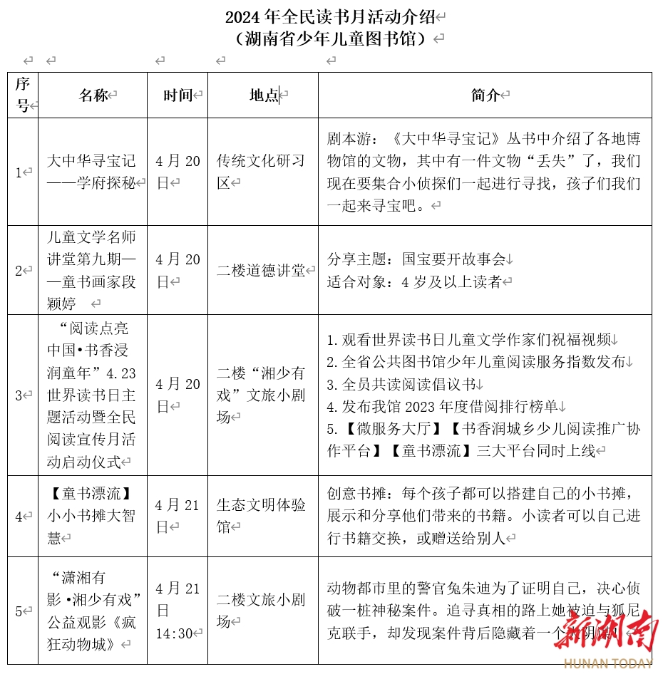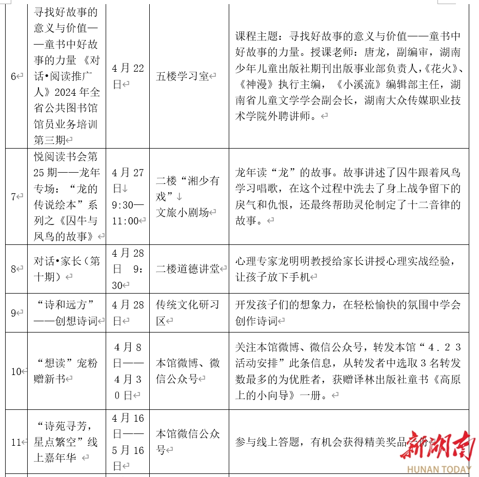 据介绍,在4月全民读书月,湖南省少年儿童图书馆共有17项精品阅读活动与读者们见面。作为湖南公共文化地标之一,少儿图书馆希望以全民阅读宣传月活动为契机,继续积极探索优秀传统文化传承新路径,切实抓好“阅读+”文旅融合新业态实践,全力推广全民阅读、培植文化血脉、滋养民族精神。让大朋友、小朋友,“都能享受阅读带来的兴趣”,能在图书馆里感受到阅读的快乐。