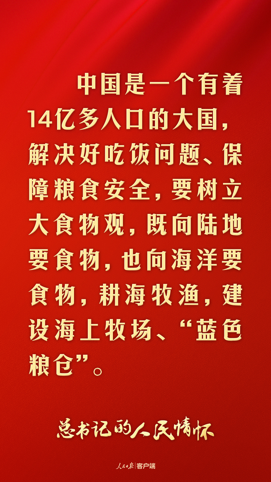 向江河湖海要食物。到广东东海岛上看海水养殖,习近平总书记强调:“提高我们国民的身体素质,把水产搞上去,把蛋白质搞上去很重要。”
