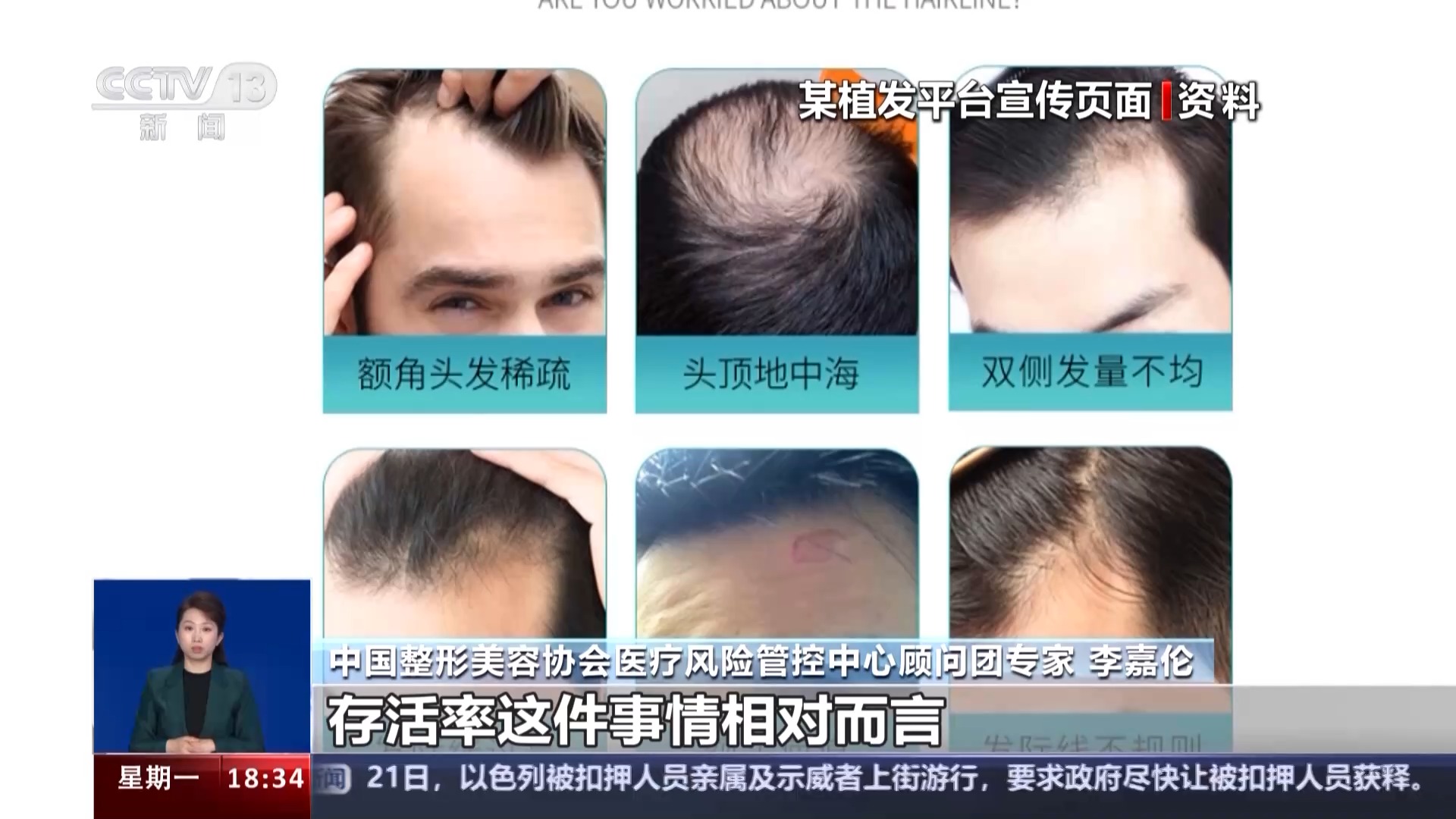 中国整形美容协会医疗风险管控中心顾问团专家 李嘉伦:很多时候你并不知道它的存活率95%是指的是毛囊单位还是植发单位,每一个毛囊中可能有2到3根头发,它可以进行分离,分离完了之后进行种植,这个时候就不应该这样算的。所以消费者经常会很难去界定每一个专业术语背后真正的意思,而被某一个数字所迷惑。
