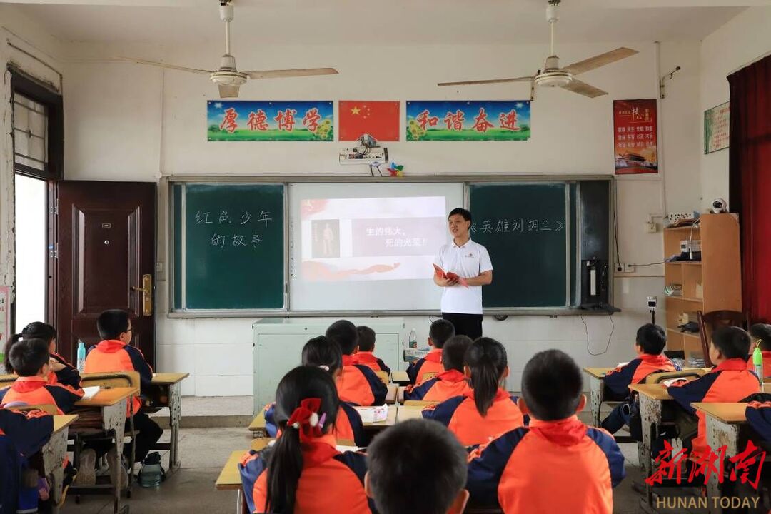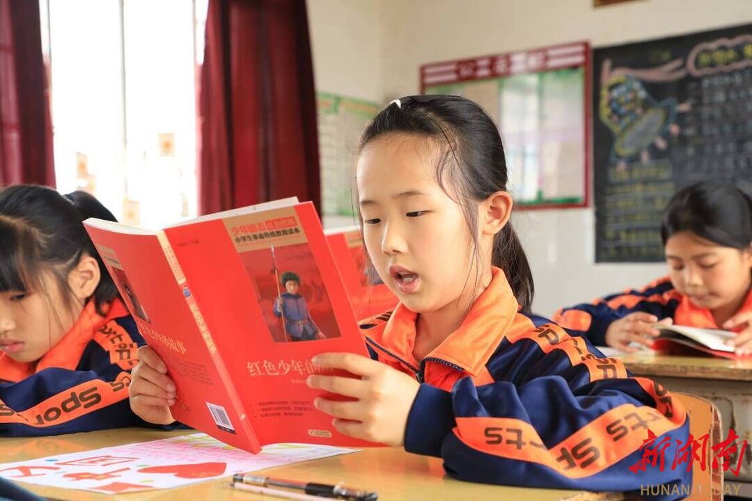 湖南日报·新湖南客户端4月23日讯(通讯员 熊玲芝 谢志豪)4月22日,省级书香班级、湖南科技学院文法学院汉文2103班的同学们,在该校省级“优秀阅读推广人”欧阳智超老师的带领下,为永州零陵区凼底乡中心小学的孩子们送上了由湖南科技学院图书馆捐赠的书籍《红色少年的故事》,并一同诵读《英雄刘胡兰》篇章。