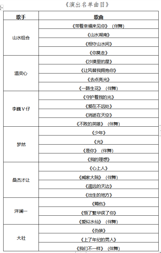 期间,景区还邀请了白平衡乐队、失浪潮乐队、迷你巨人乐队、张小九乐队、陈直乐队、撞客Drunker乐团、左声道乐队等进行现场演出,前2天演唱歌曲为乐队原创音乐,最后一天为经典歌曲翻唱。