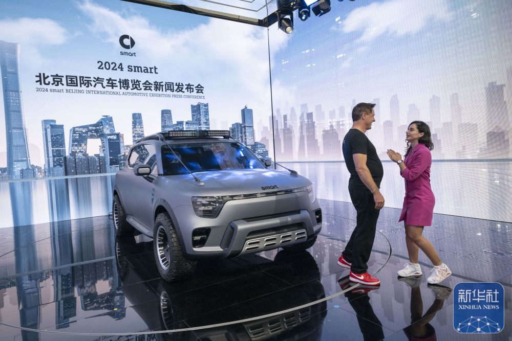 ↑4月25日,在北京中国国际展览中心顺义馆举行的2024北京车展上,全新smart精灵#5概念车亮相。
