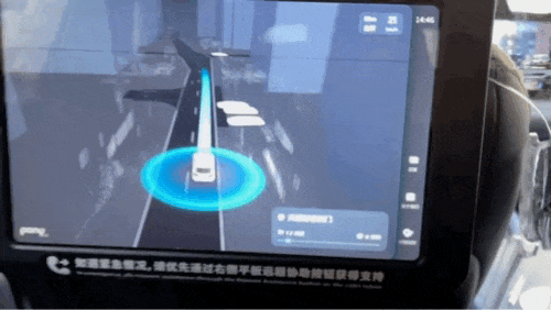 4月19日,在北京市大兴区,一辆无人驾驶出租车内的HMI交互界面(陈晶/摄)