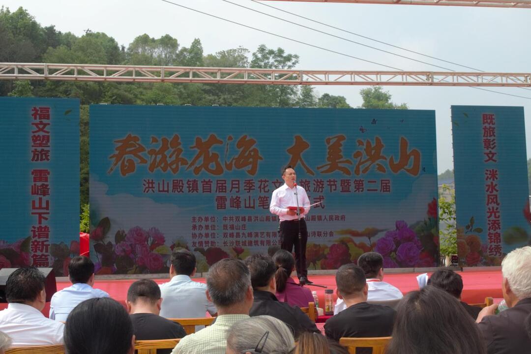 为积极探索乡村旅游新路径,助力乡村振兴,4月26日,“春游花海·大美洪山”娄底市双峰县洪山殿镇首届月季花文化旅游节暨第二届雷峰山笔会在双峰县洪山殿镇大旗村既福生态园精彩启幕。