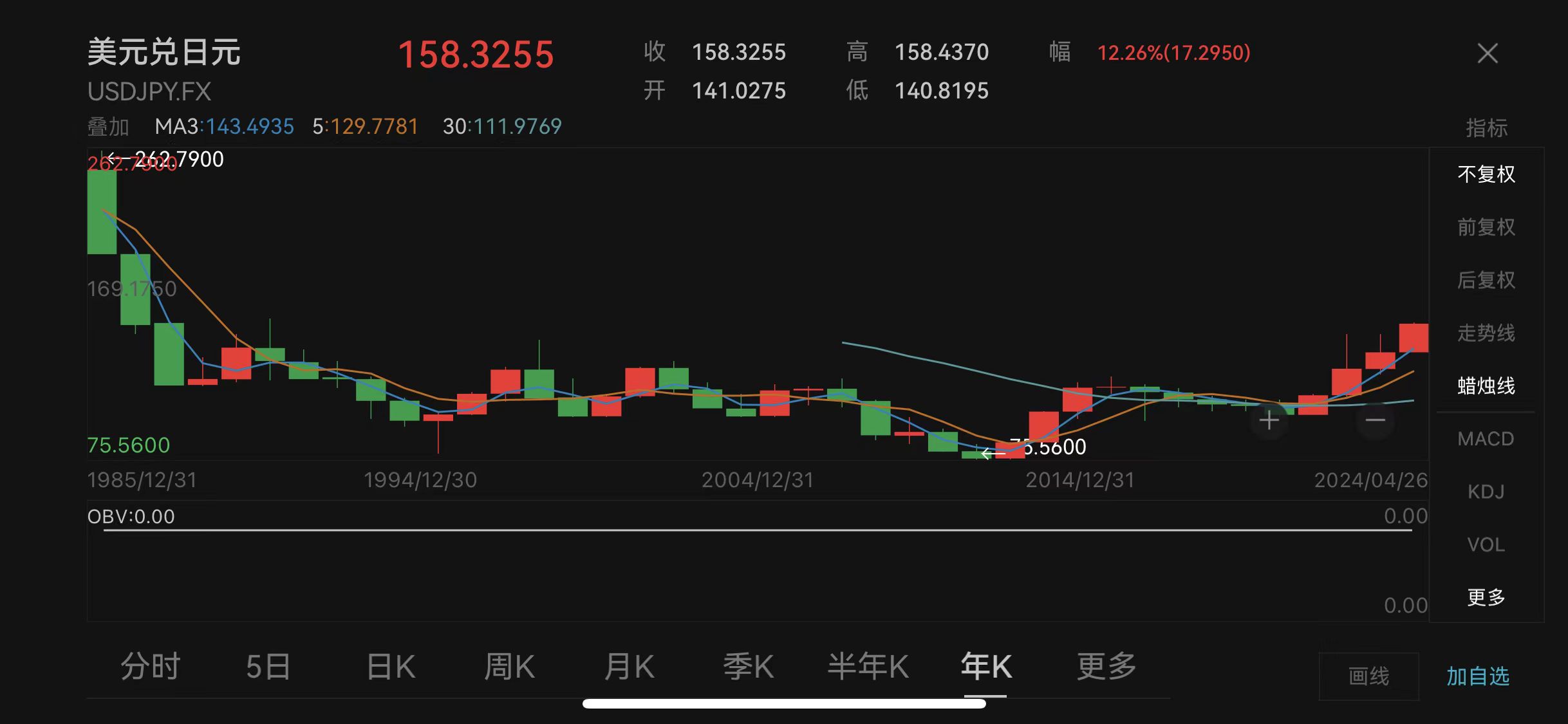 日元对美元汇率走势图