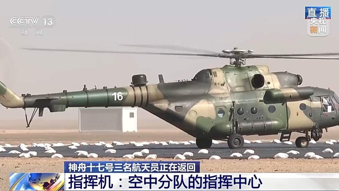 此刻,在东风着陆场,神舟十七号搜救回收空中分队5架直升机也正在飞抵空中分队集结点。