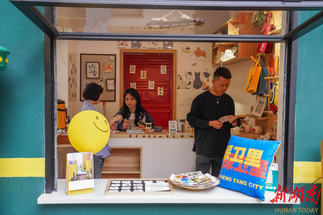4月30日,在衡阳市珠晖区保卫里景区,游客正在文创小店挑选文创产品。湖南日报全媒体记者 成俊峰 摄