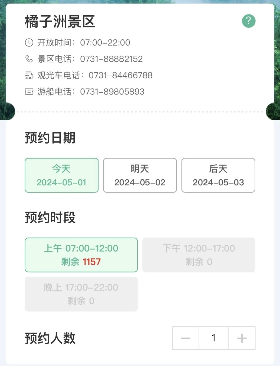 景区提醒游客:“五一”假期期间前往岳麓山和橘子洲,请记得提前3天预约,通过官方公众号了解实时票务、车辆入园预约、观光车购票资讯。