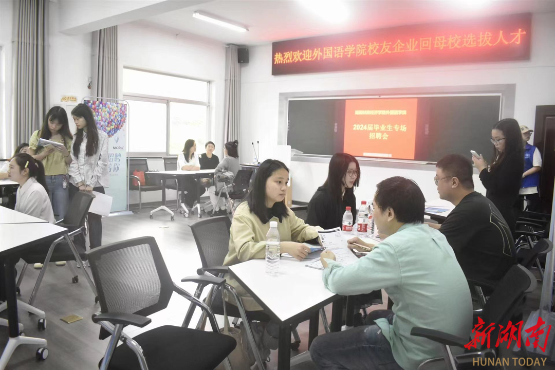 为助力毕业生就业,4月29日上午,湖南财政经济学院外国语学院举行2024届毕业生专场招聘会。广东省有为市场营销策划有限公司、中山市迈锐照明科技有限公司、湖南利来达钢铁有限公司等5家校友企业携岗返校促就业。