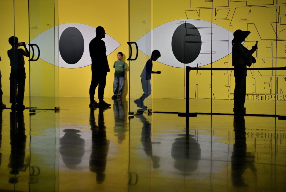 ↑5月2日,游客在位于北京市海淀区的清华大学艺术博物馆参观“看与被看:当代艺术展”。新华社记者 尹栋逊 摄