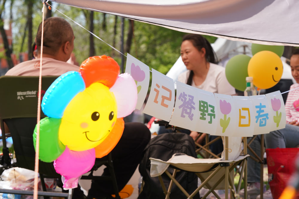 ↑5月1日,游客在位于哈尔滨市的黑龙江省森林植物园露营区休闲。新华社记者 王松 摄