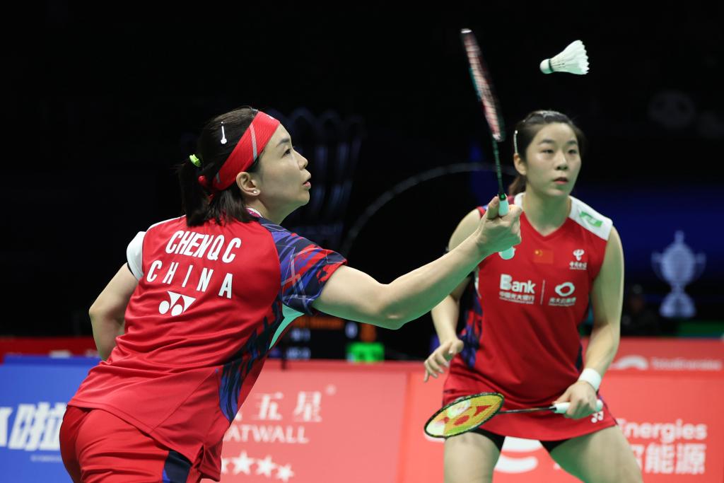4月30日,中国队组合陈清晨(左)/贾一凡在女双比赛中。 新华社记者 陈斌 摄
