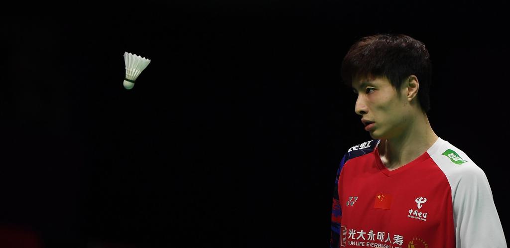 4月30日,中国队选手石宇奇在男子单打比赛中。 新华社记者 侯昭康 摄