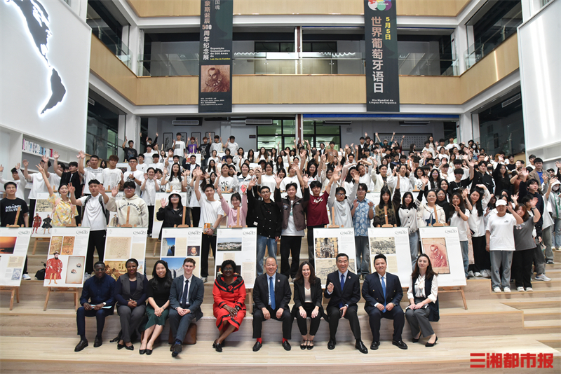 三湘都市报·新湖南客户端5月7日讯(通讯员 杨爽 刘潇雨 全媒体记者 刘镇东)5月5日是“世界葡萄牙语日”。为进一步促进学校葡萄牙语的学习及研究,加快中国与葡语国家之间人文交流“双向奔赴”,5月6日,湖南外国语职业学院(以下简称“湖外”)在图书馆举行2024葡萄牙语日文化活动暨卡蒙斯诞辰500周年纪念展揭幕仪式。