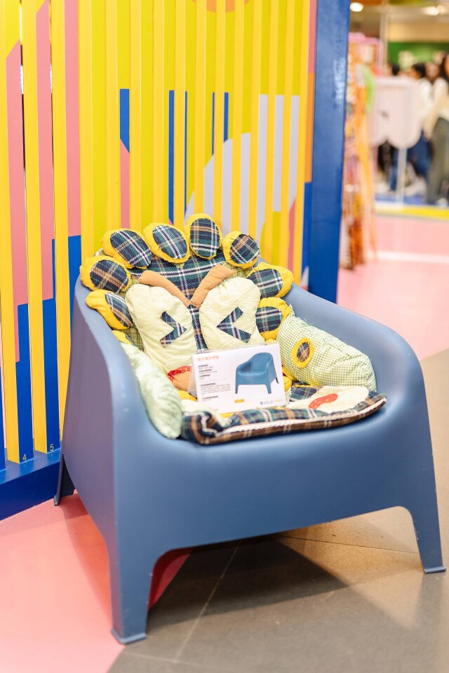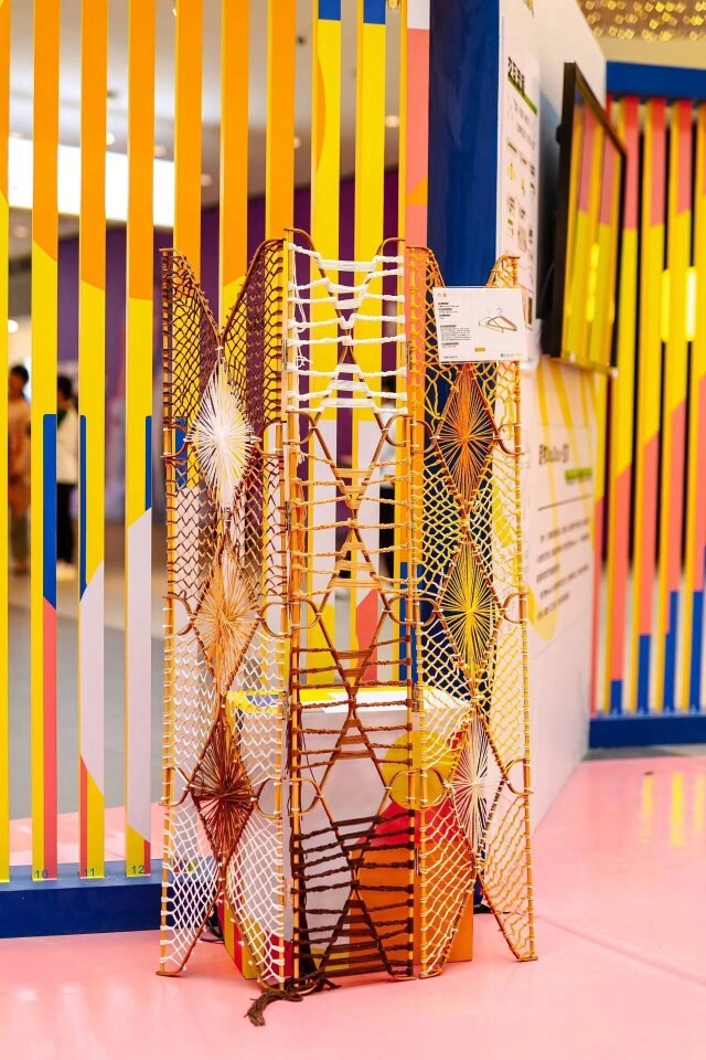 “这次展览中的作品都是我们‘可持续设计研究’课程中的学生作业。”长沙理工大学设计艺术学院的邓冰旎老师介绍,同学们的作品均以长沙宜家家居可循环中心的家居和产品为创作基础,融入升级再造创意,并搭配上明亮鲜艳的“多巴胺色彩”,使旧物摇身变成了充满春夏气息的家具,增添了全新生命力。