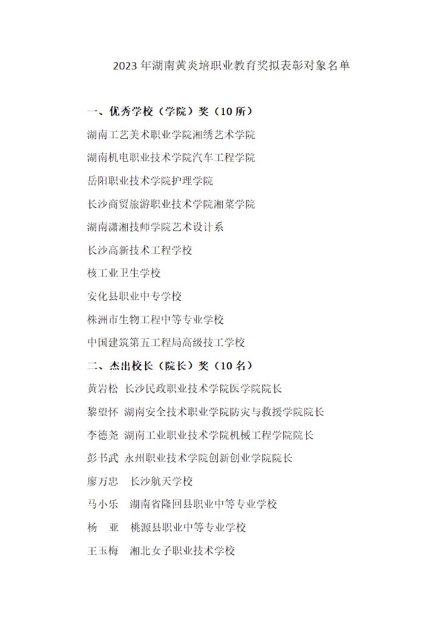 湖南日报5月7日讯(通讯员 周海荣)近日,省人力资源和社会保障厅、省委统战部、省中华职教社公布了2023年湖南黄炎培职业教育奖的获奖名单,共评选出10个优秀学校(学院)奖,10名杰出校长(院长)奖和36名杰出教师奖。湖南机电职业技术学院汽车工程学院荣获“优秀学校(学院)奖”。