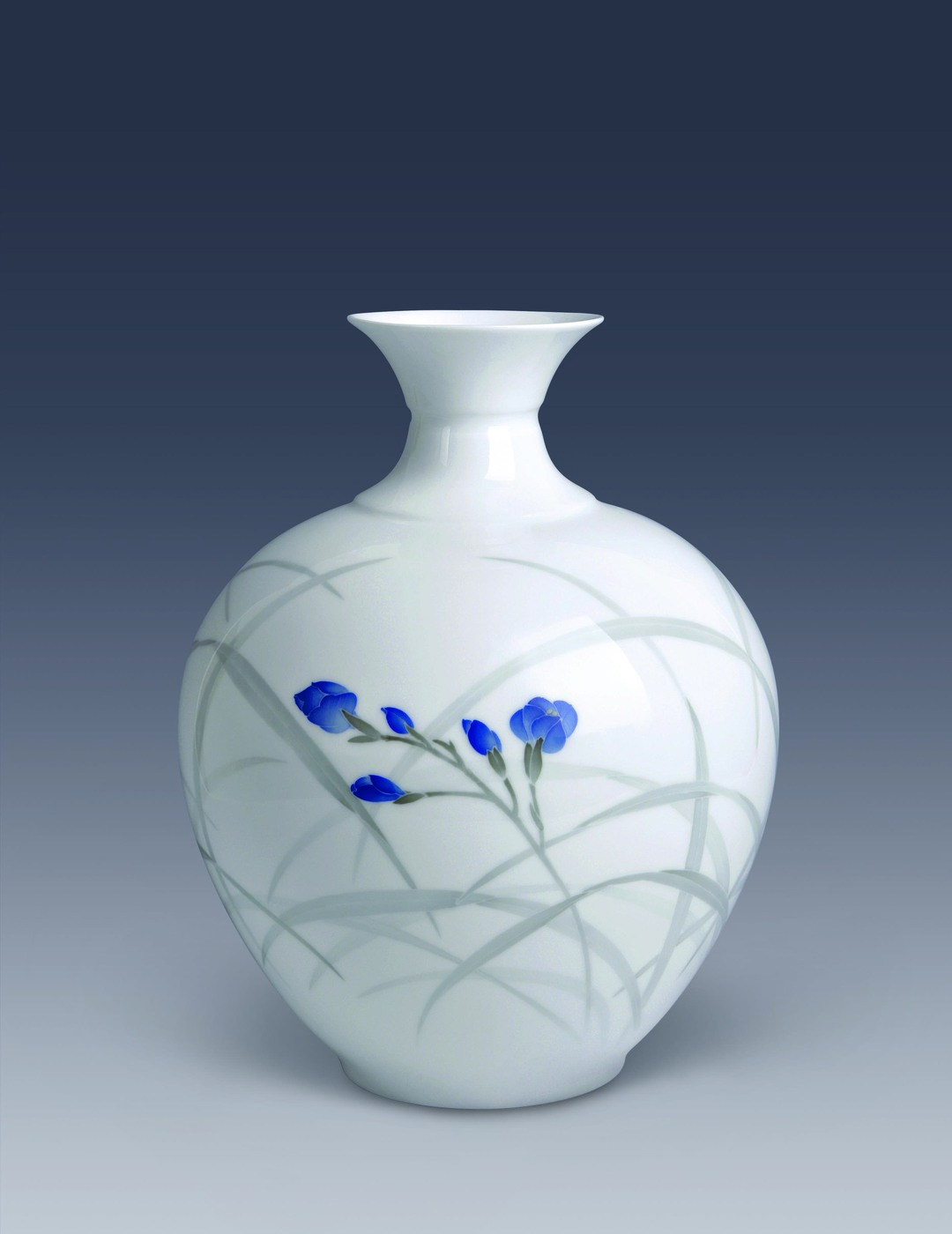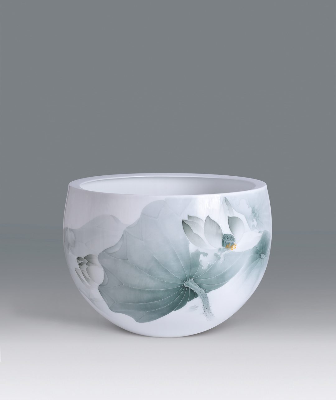 陈扬龙的女儿——陈利,受父亲熏陶,也专注于“薄施淡染”工艺的研究。“薄施淡染”工艺繁复且周期漫长,她却让醴陵瓷从原来大红大绿、类似于唐代的审美转换成为一种清雅、素淡的宋瓷美学。