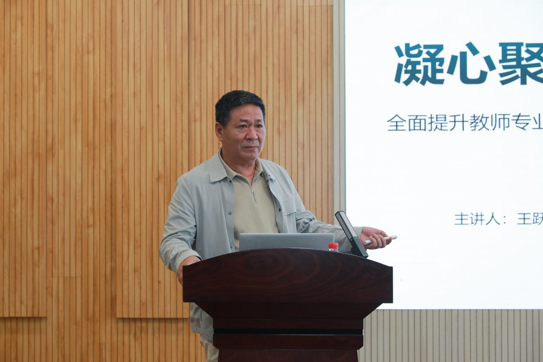 音乐学院院长王跃辉以《全面提升教师专业技能 确保“育人育才”工程走深走实》为题,详细介绍了该院每年对青年教师专业技能进行考核的具体举措,以及对提高青年教师教育教学能力、提升教育教学质量的重要推动作用。