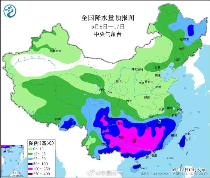 据中央气象台,预计5月中旬,南方多降雨过程,主要出现在5月10日至12日、14日至15日、17日前后。其中10日至12日,贵州中东部、江南、华南中北部等地自西向东、自北向南先后有大到暴雨,湖南中南部、江西中南部、福建西部等地的部分地区有大暴雨。上述地区累计降雨量40~80毫米,部分地区100~150毫米,局地超过200毫米。过程伴有短时强降雨,最大小时降雨量20~50毫米,局地可达70毫米,最强降雨时段出现在10日夜间至11日。
