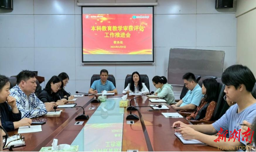为进一步推进学校自评自建各项工作任务高质量落实,5月9日上午,湖南财政经济学院教务处在办公楼119会议室召开本科教育教学审核评估工作推进会。会议由教务处处长李茂平主持,教学质量监控与评估中心处长邓永红、教务处全体成员参加。
