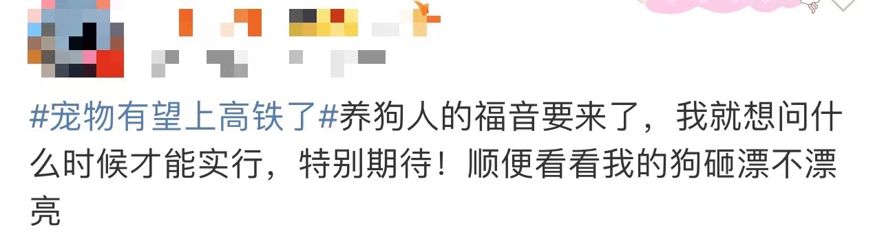 高铁宠物运输有望放开,对于这一可能的政策变动,旅客们的反应各异,有关话题也在社交媒体平台上引发广泛讨论。