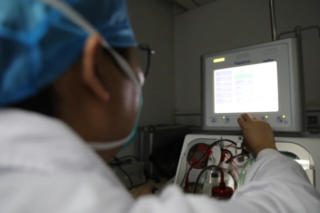 24小时床旁血滤一刻不能离人,护士周赛强、霍旭琪轮流看护。
