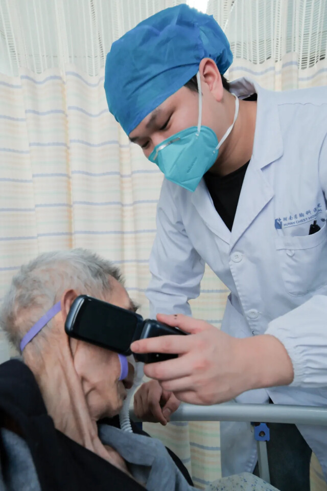 15时30分,ICU医生请来内镜中心医生为患者做检查,护士在一旁协助。