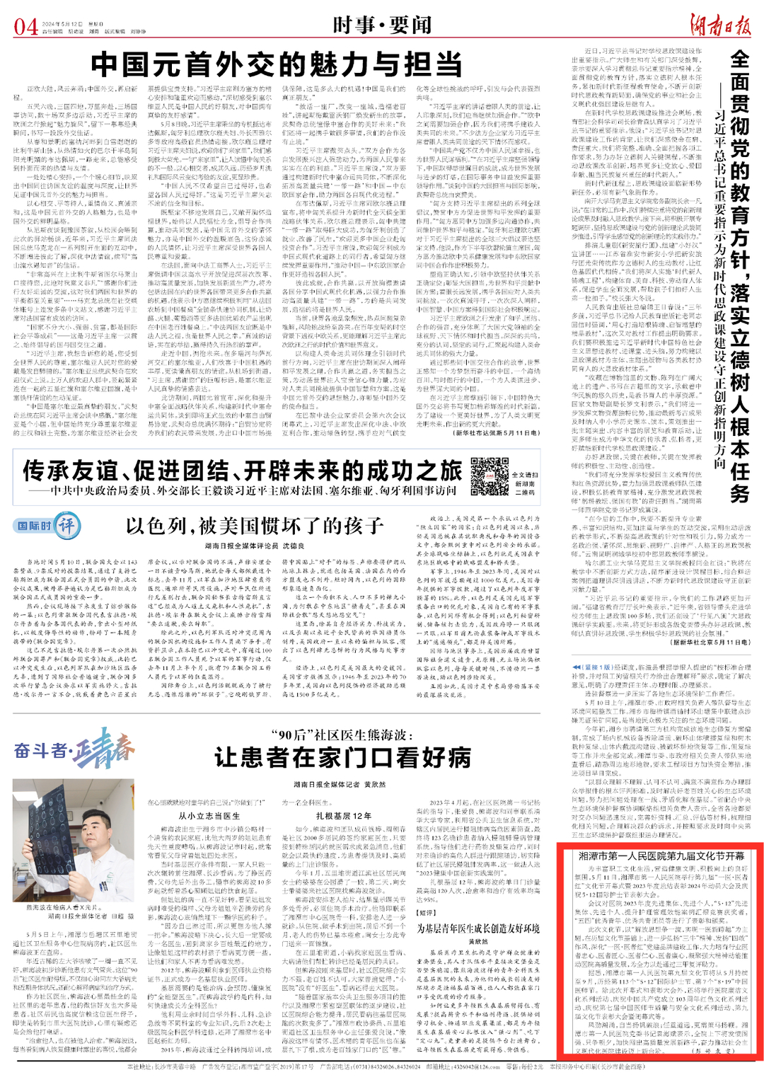 湘潭市第一人民医院第九届文化节开幕丨湖南日报