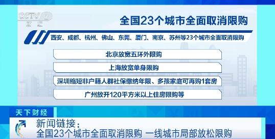 全国23个城市全面取消限购!超50城支持住房“以旧换新”