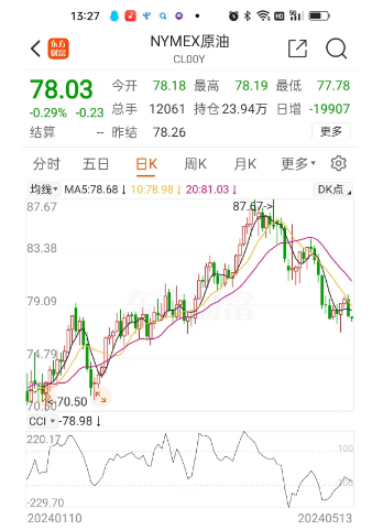 目前,纽约原油期货价格已回落到80美元/桶以下,最新价格在78美元/桶左右,与今年以来最高点(出现在4月中旬)87美元左右/桶相比,下跌幅度超过了10%;布伦特原油期货价格也逼近80美元/桶大关,与今年以来最高价相比跌幅也超过一成。